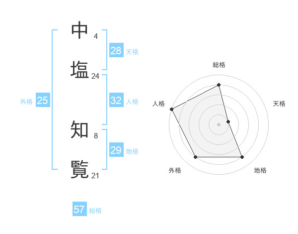 中塩 知覧さんの総格は57画の4点!