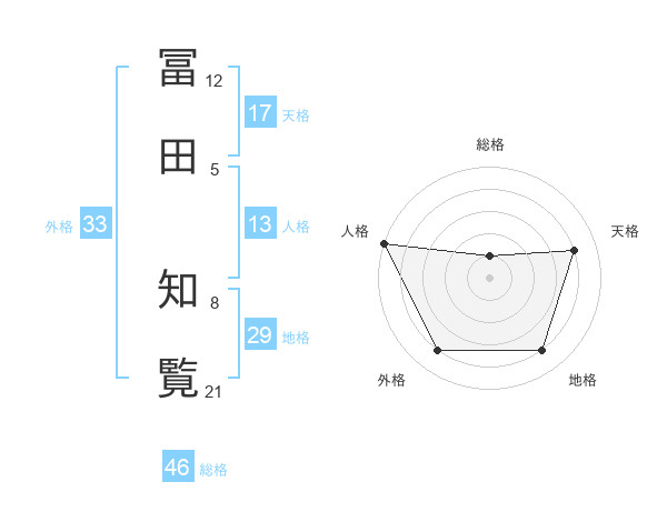 冨田 知覧さんの天格は17画の4点!