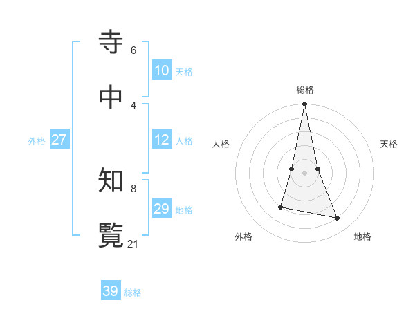 寺中 知覧さんを姓名の画数から五運を鑑定