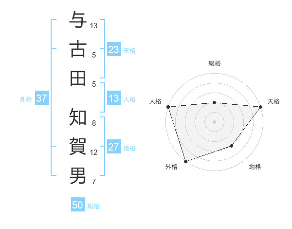 与古田 知賀男さんの外格は37画の5点