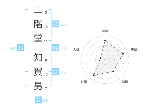 二階堂 知賀男さんを姓名の画数から五運を鑑定