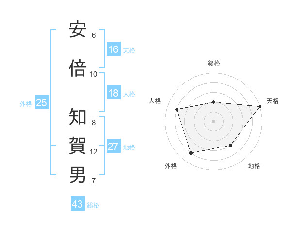 安倍 知賀男さんを姓名の画数から五運を鑑定