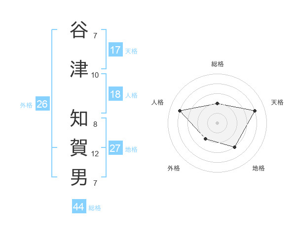 谷津 知賀男さんを姓名の画数から五運を鑑定