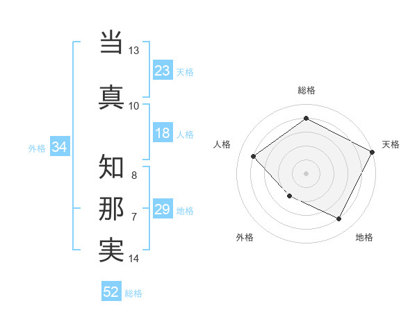 当真 知那実さんの総格は52画の4点!