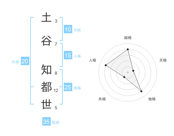 土谷 知都世さんを姓名の画数から五運を鑑定