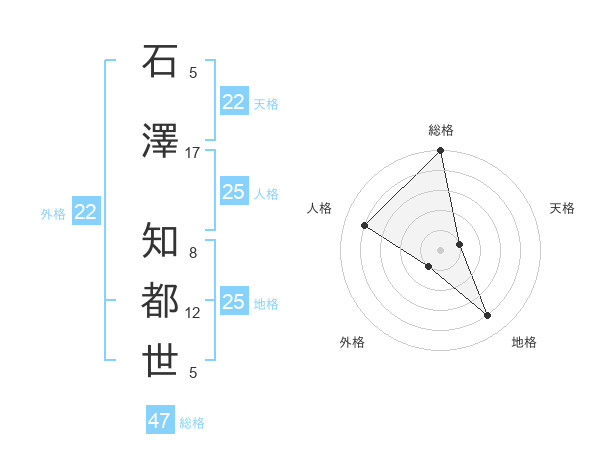 石澤 知都世さんの総格は47画の5点!