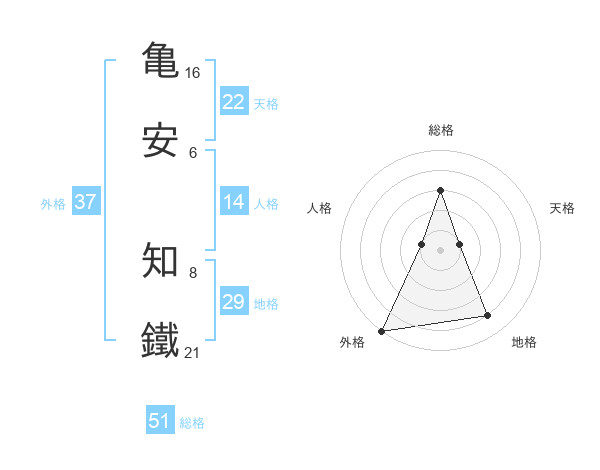 亀安 知鐵さんの外格は37画の5点!