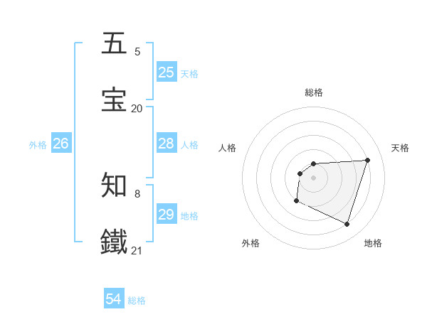 五宝 知鐵さんを姓名の画数から五運を鑑定