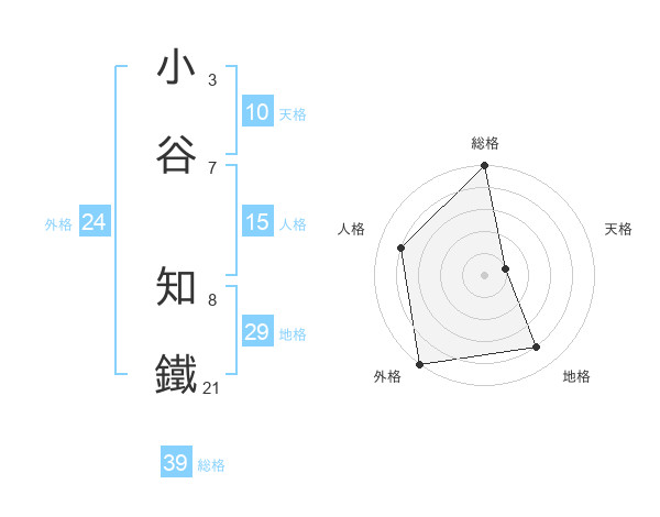 小谷 知鐵さんを姓名の画数から五運を鑑定