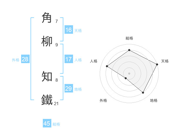 角柳 知鐵さんの総格は45画の4点!