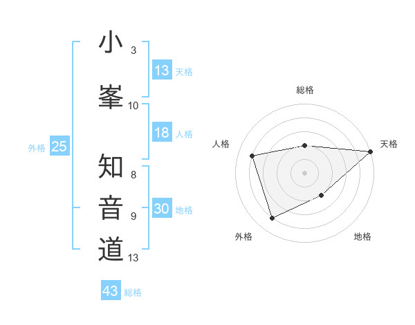 小峯 知音道さんの天格は13画の5点!