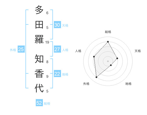 多田羅 知香代さんを姓名の画数から五運を鑑定