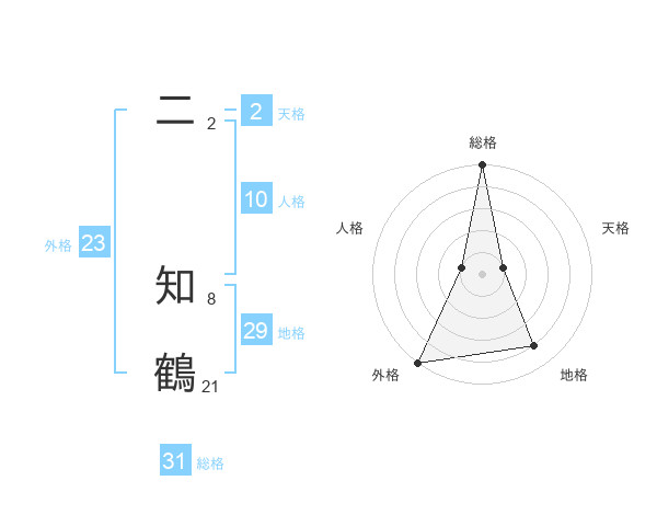 二 知鶴さんの総格は31画の5点!