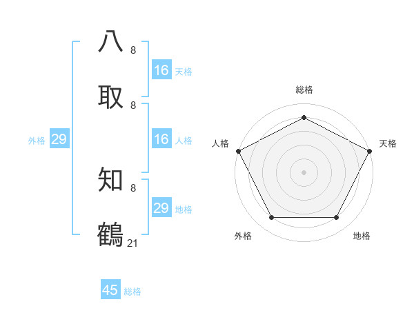 八取 知鶴さんの総格は45画の4点!
