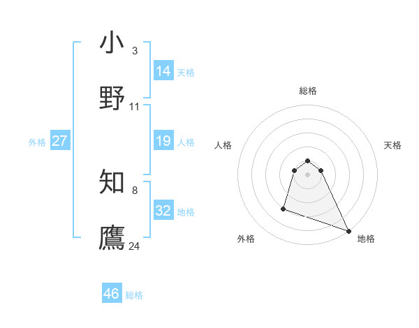 小野 知鷹さんを姓名の画数から五運を鑑定