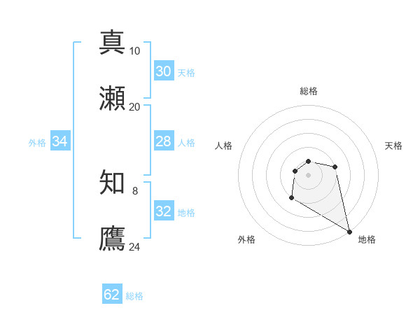 真瀬 知鷹さんを姓名の画数から五運を鑑定