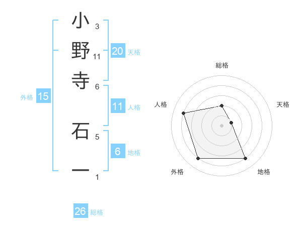 小野寺 石一さんを姓名の画数から五運を鑑定