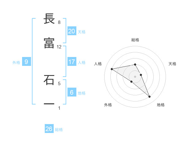 長富 石一さんの総格は26画の2点!