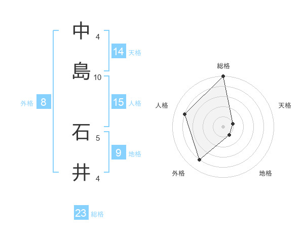 中島 石井さんの総格は23画の5点!