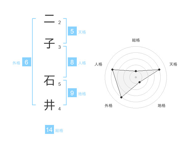 二子 石井さんの天格は5画の4点!