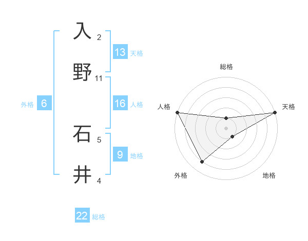 入野 石井さんの天格は13画の5点!
