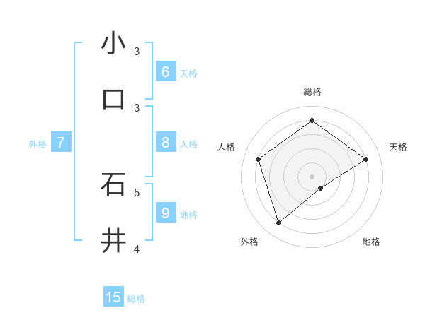 小口 石井さんの総格は15画の4点!