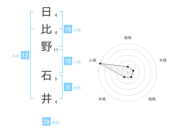 日比野 石井さんの総格は28画の1点!