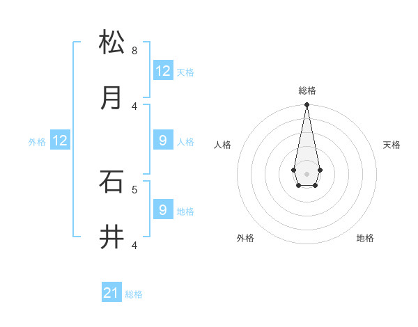 松月 石井さんの総格は21画の5点!