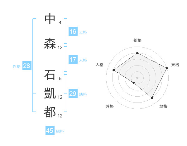 中森 石凱都さんの総格は45画の4点