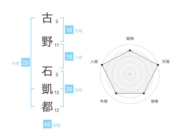 古野 石凱都さんの総格は45画の4点!