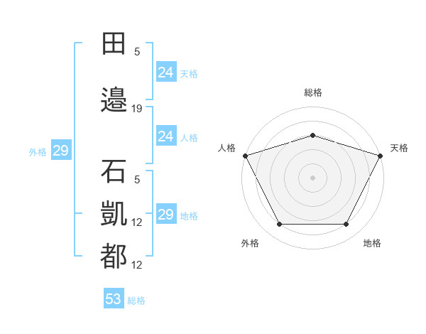 田邉 石凱都さんを姓名の画数から五運を鑑定