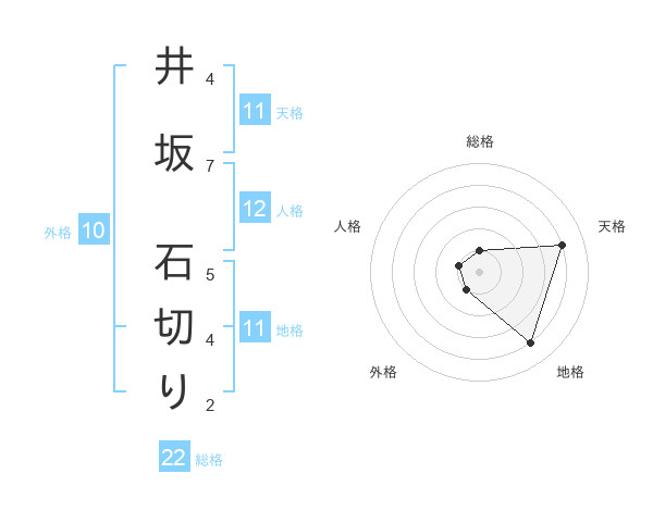 井坂 石切りさんの地格は11画の4点!