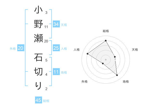 小野瀬 石切りさんを姓名の画数から五運を鑑定