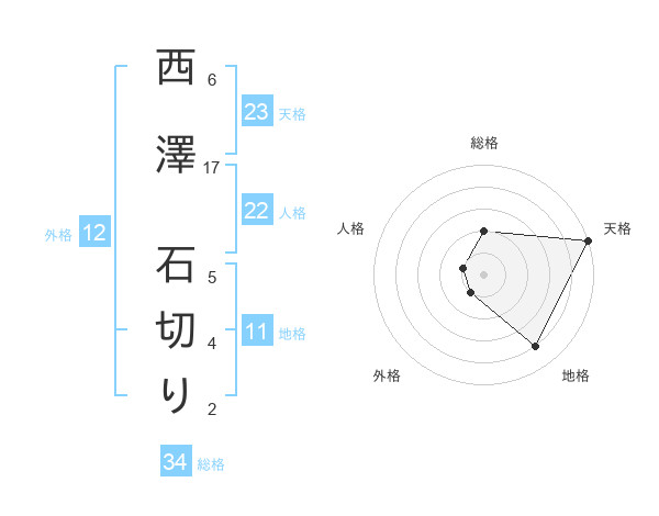 西澤 石切りさんを姓名の画数から五運を鑑定