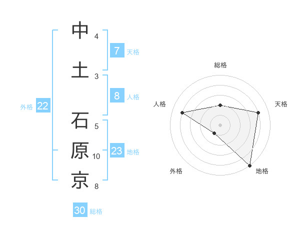 中土 石原京さんの天格は7画の4点!