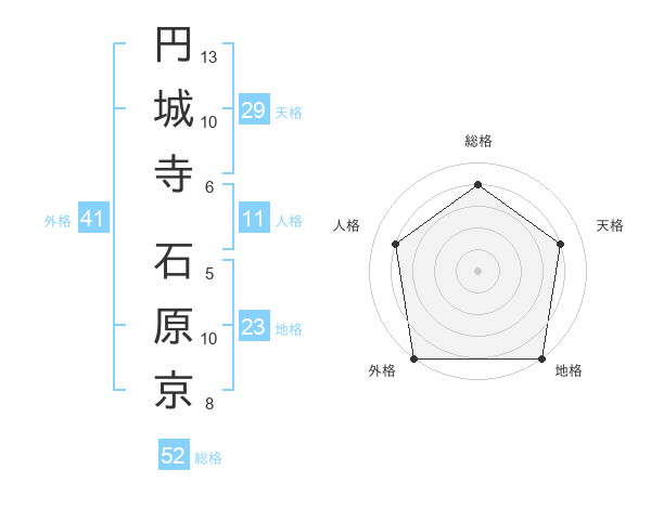 円城寺 石原京さんの外格は41画の5点!