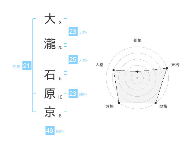 大瀧 石原京さんの天格は23画の5点!