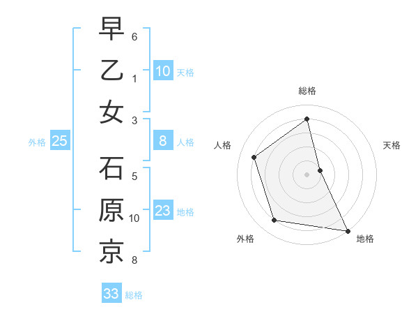 早乙女 石原京さんを姓名の画数から五運を鑑定