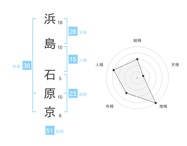 浜島 石原京さんを姓名の画数から五運を鑑定