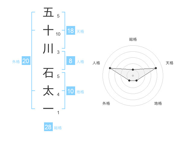 五十川 石太一さんを姓名の画数から五運を鑑定
