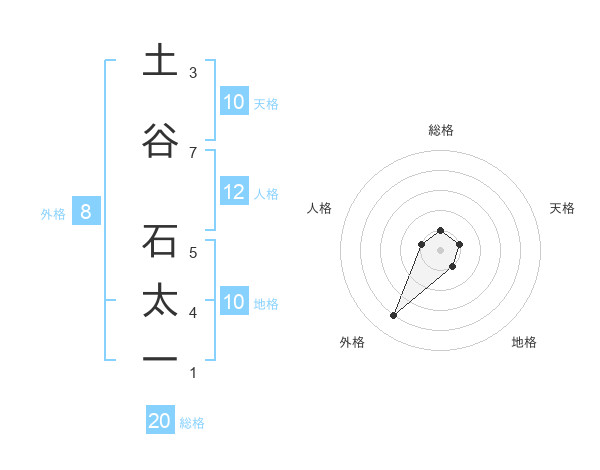 土谷 石太一さんを姓名の画数から五運を鑑定