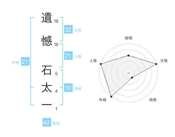 遺憾 石太一さんの人格は21画の5点!