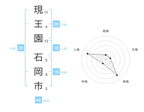 現王園 石岡市さんの総格は46画の1点!