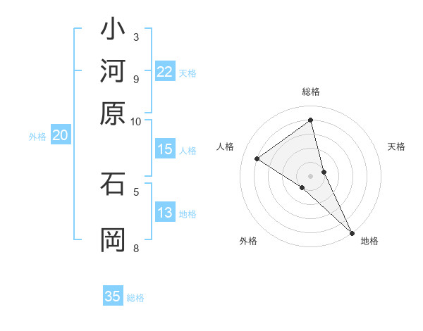 小河原 石岡さんの総格は35画の4点!