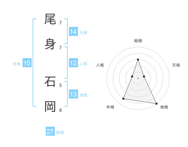尾身 石岡さんの総格は27画の3点!