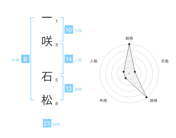 一咲 石松さんの総格は23画の5点!