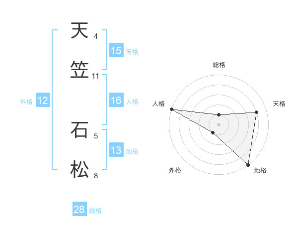 天笠 石松さんの総格は28画の1点!
