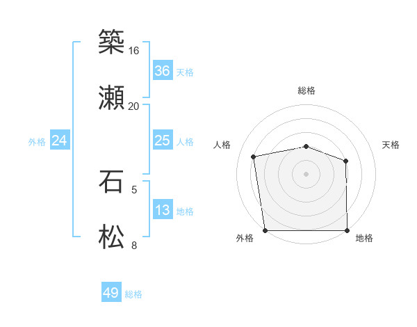 築瀬 石松さんの総格は49画の2点!