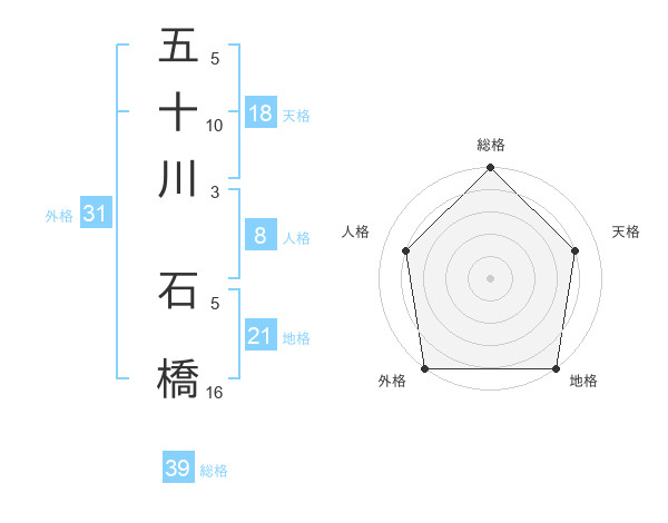 五十川 石橋さんの総格は39画の5点!