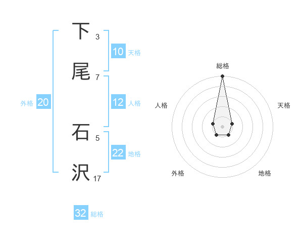 下尾 石沢さんを姓名の画数から五運を鑑定